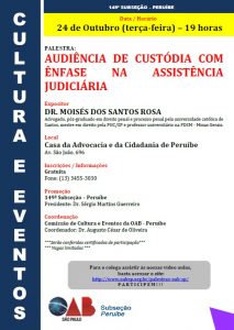 Comemoração de Aniversário da 149o Subseção da Ordem dos Advogados do Brasil Quando: dia 25...